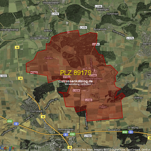 Postleitzahlgebiet (PLZ) 89179
