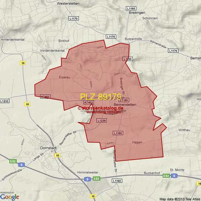 Straßenverzeichnis zur Postleitzahl 89179