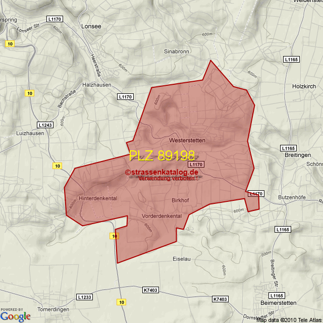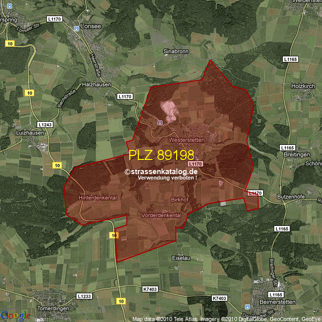 Postleitzahlgebiet (PLZ) 89198
