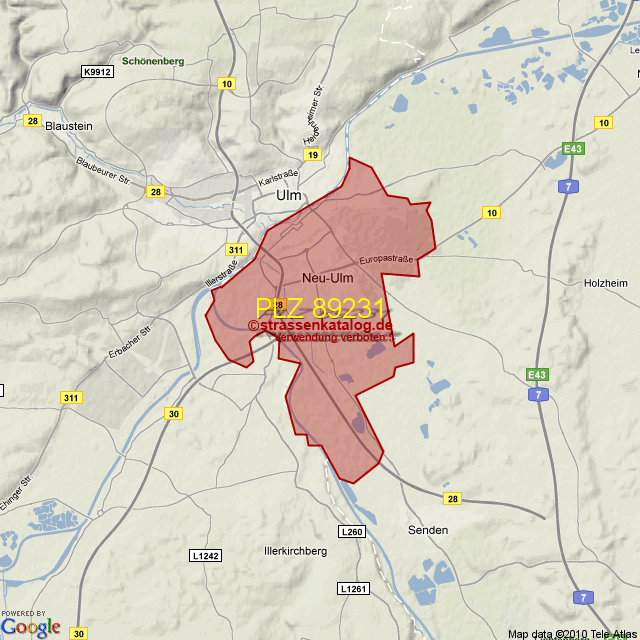 Ortsteile von Neu-Ulm mit der PLZ 89231