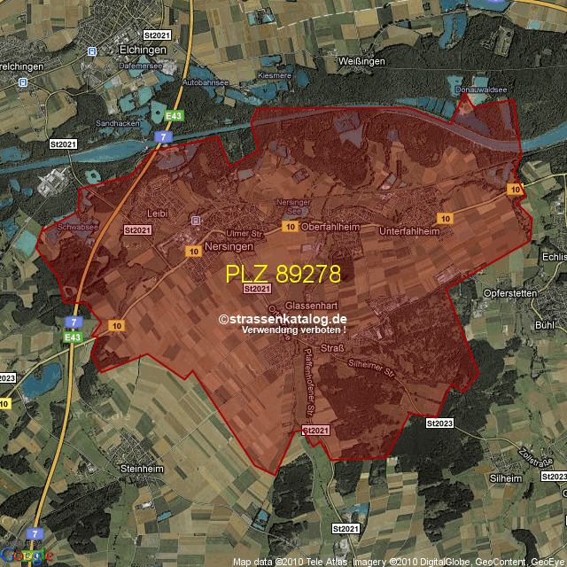 Postleitzahlgebiet (PLZ) 89278