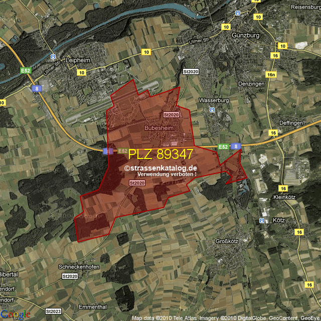 Postleitzahlgebiet (PLZ) 89347