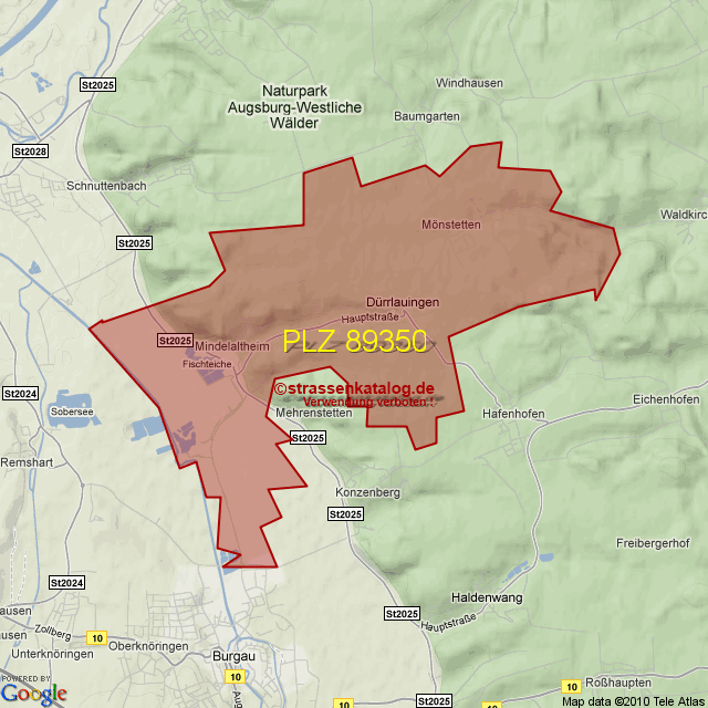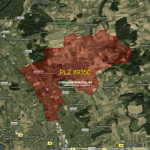 Postleitzahlgebiet (PLZ) 89350