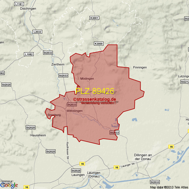 Postleitzahlgebiet (PLZ) 89426