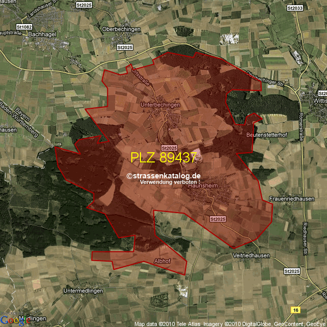 Postleitzahlgebiet (PLZ) 89437