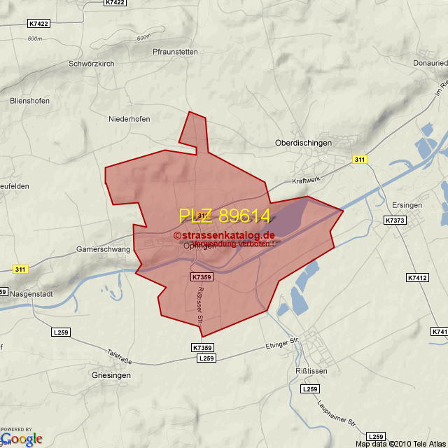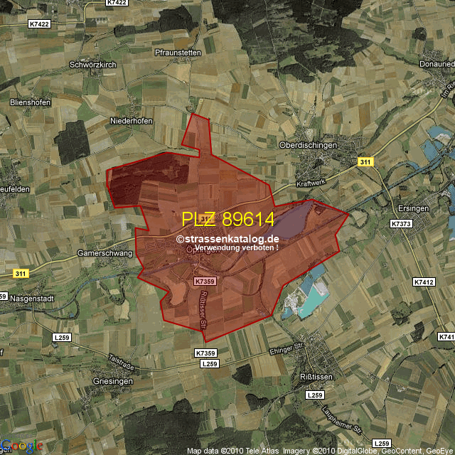 Postleitzahlgebiet (PLZ) 89614