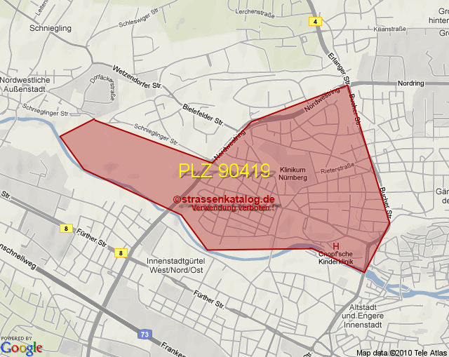 Straßenverzeichnis zur Postleitzahl 90419