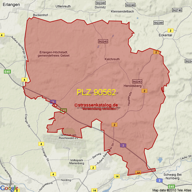 Ortsteile von Kalchreuth mit der PLZ 90562