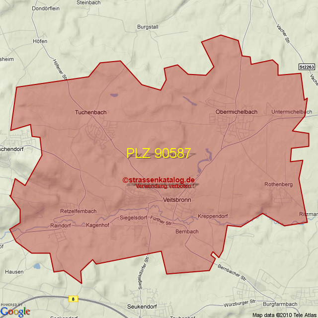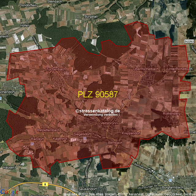 Ortsteile von Veitsbronn mit der PLZ 90587