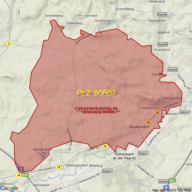 Straßenverzeichnis zur Postleitzahl 90607
