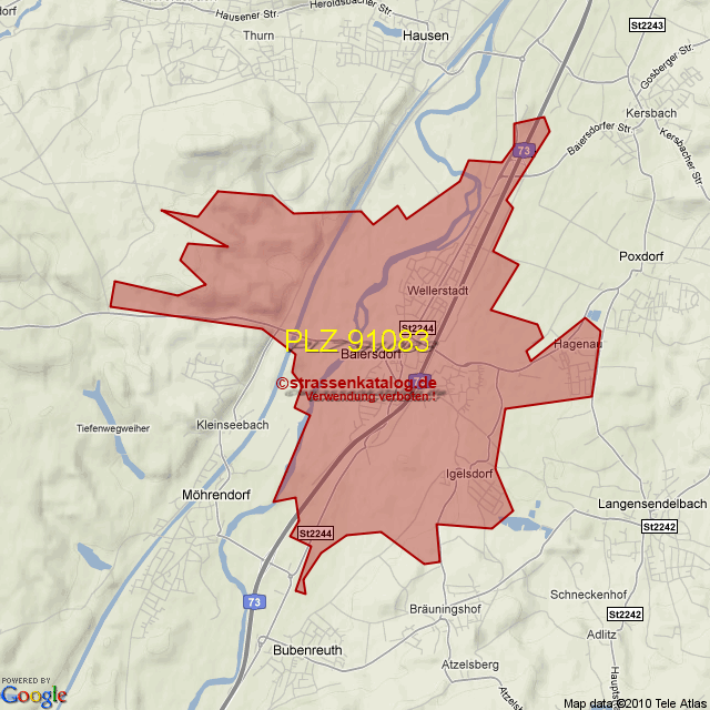 Ortsteile von Baiersdorf mit der PLZ 91083