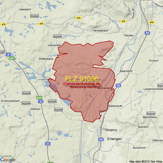 Ortsteile von Möhrendorf mit der PLZ 91096