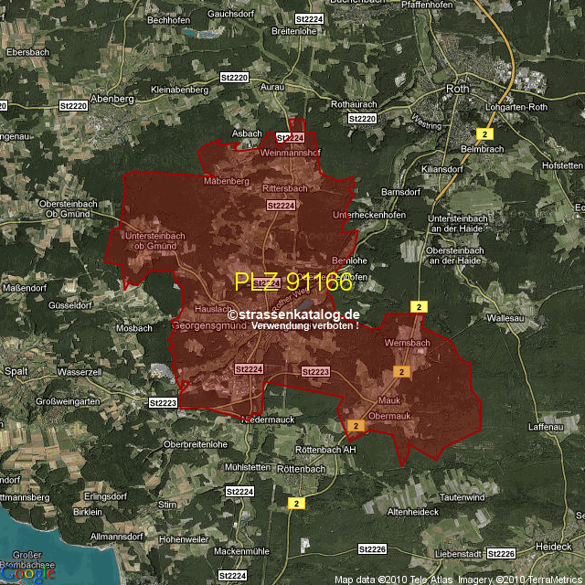Ortsteile von Georgensgmünd mit der PLZ 91166