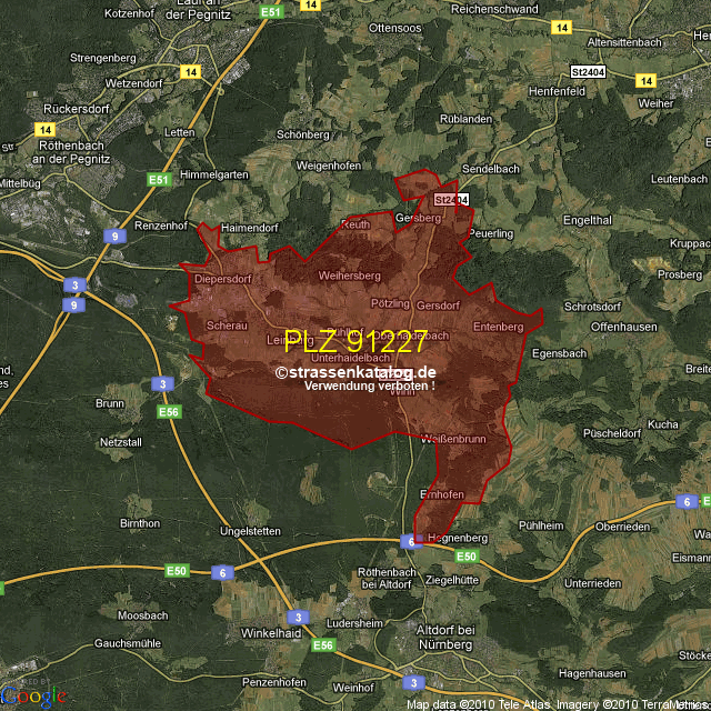 Straßenverzeichnis zur Postleitzahl 91227
