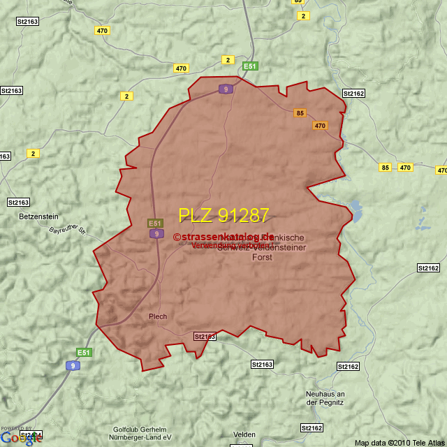 Postleitzahlgebiet (PLZ) 91287