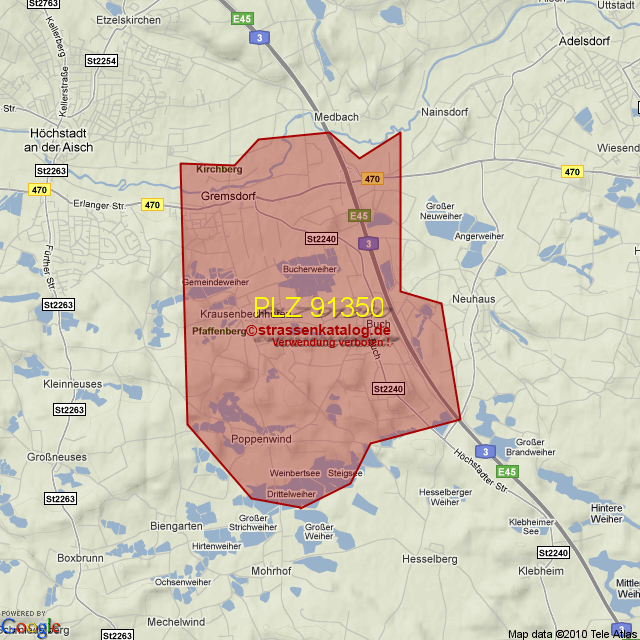 Postleitzahlgebiet (PLZ) 91350
