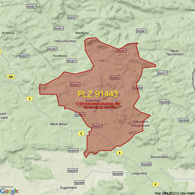 Ortsteile von Scheinfeld mit der PLZ 91443