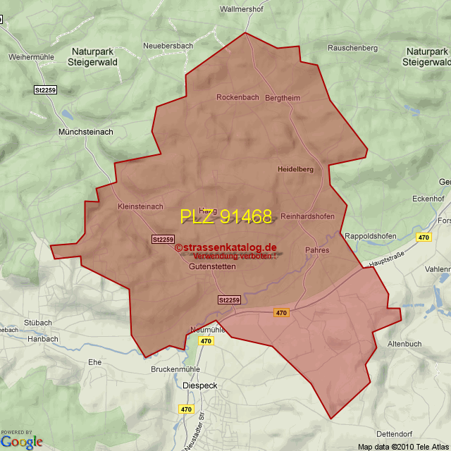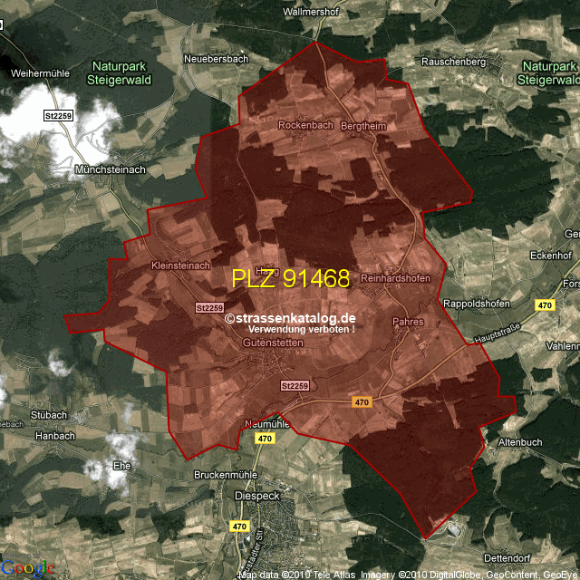 Ortsteile von Gutenstetten mit der PLZ 91468