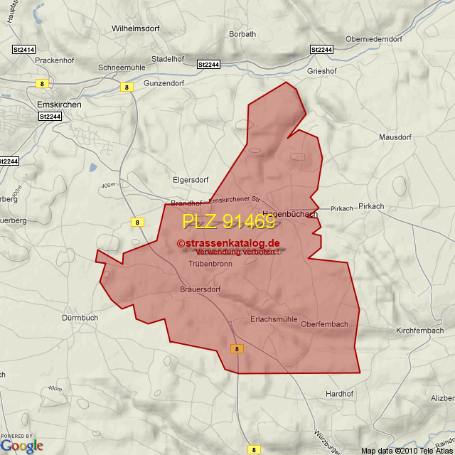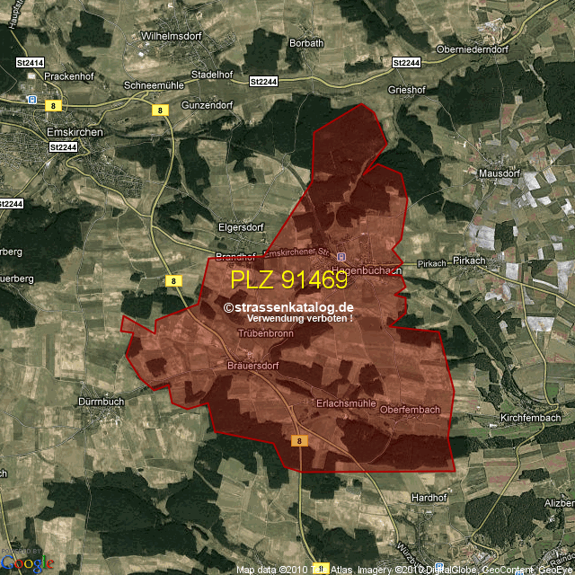 Ortsteile von Hagenbüchach mit der PLZ 91469