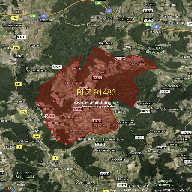 Ortsteile von Oberscheinfeld mit der PLZ 91483
