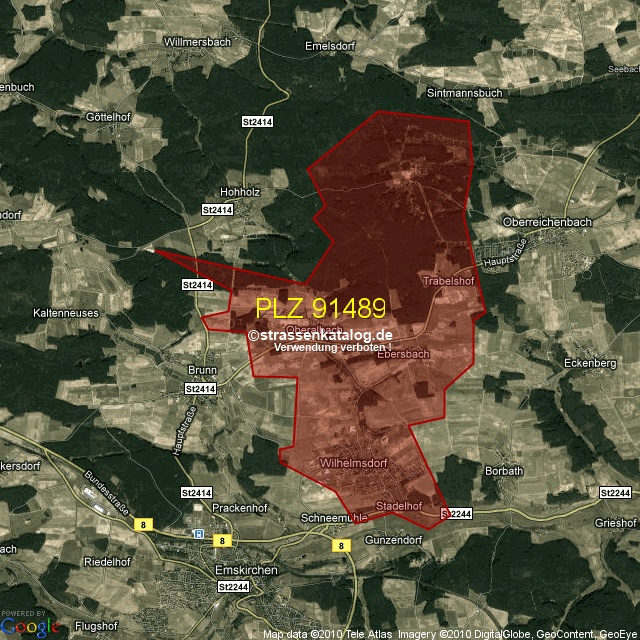 Ortsteile von Wilhelmsdorf mit der PLZ 91489