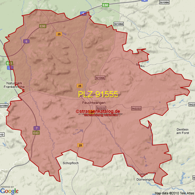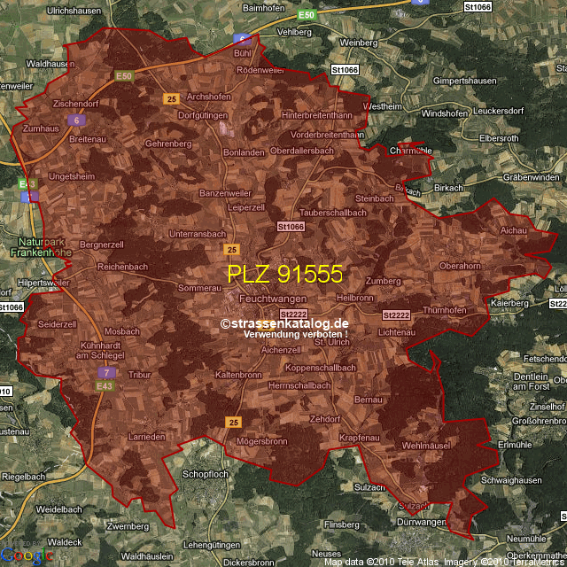 Postleitzahlgebiet (PLZ) 91555