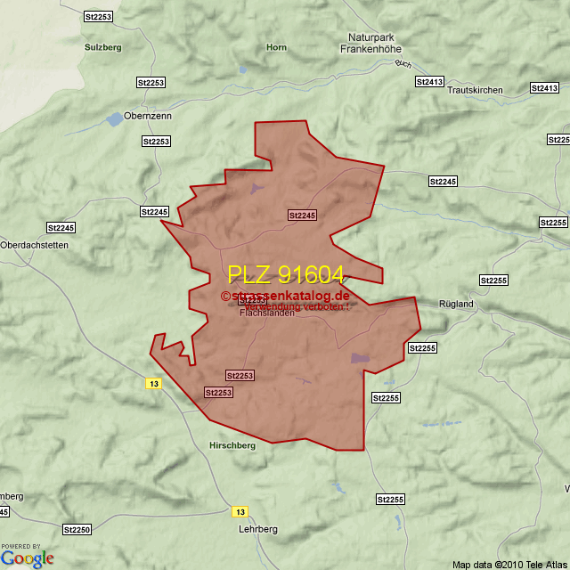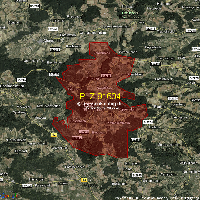 Postleitzahlgebiet (PLZ) 91604