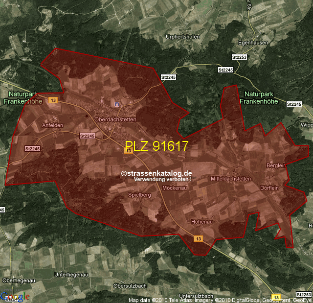 Ortsteile von Oberdachstetten mit der PLZ 91617