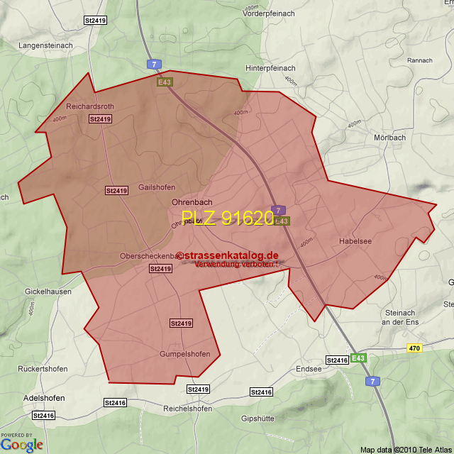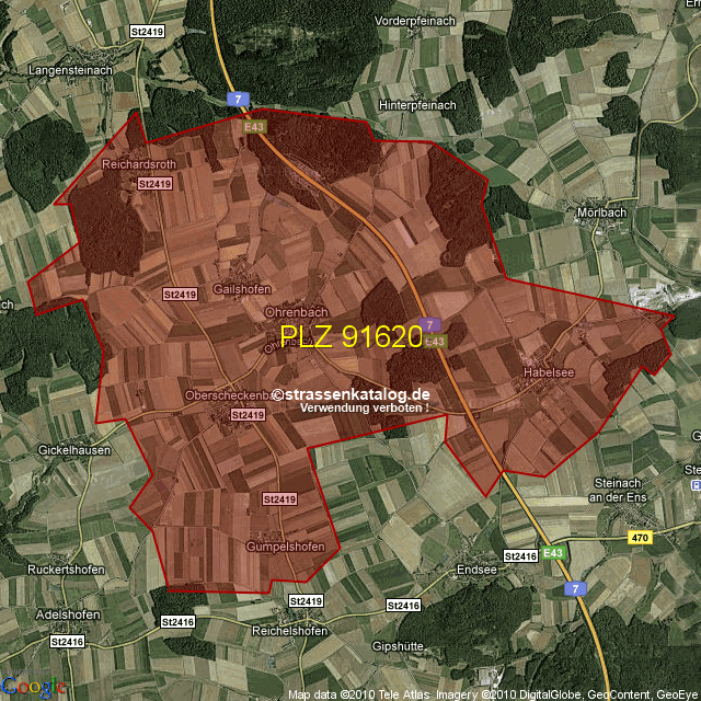 Ortsteile von Ohrenbach mit der PLZ 91620