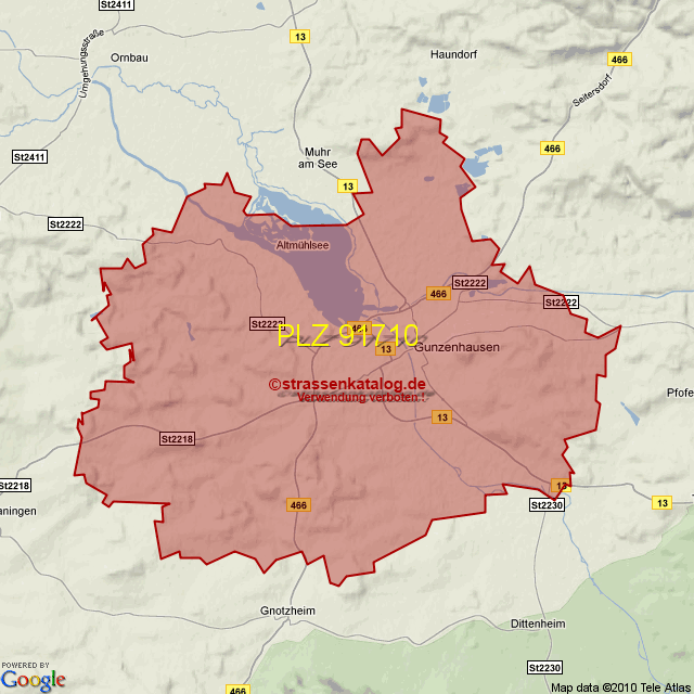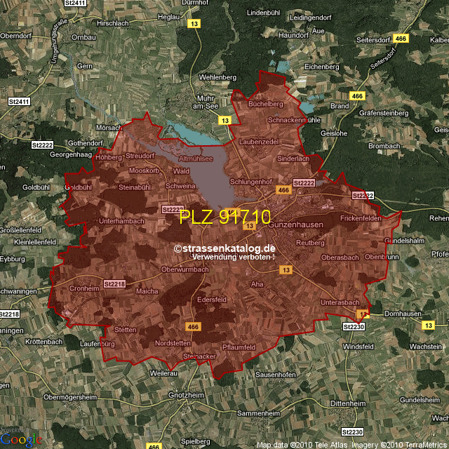 Ortsteile von Gunzenhausen mit der PLZ 91710