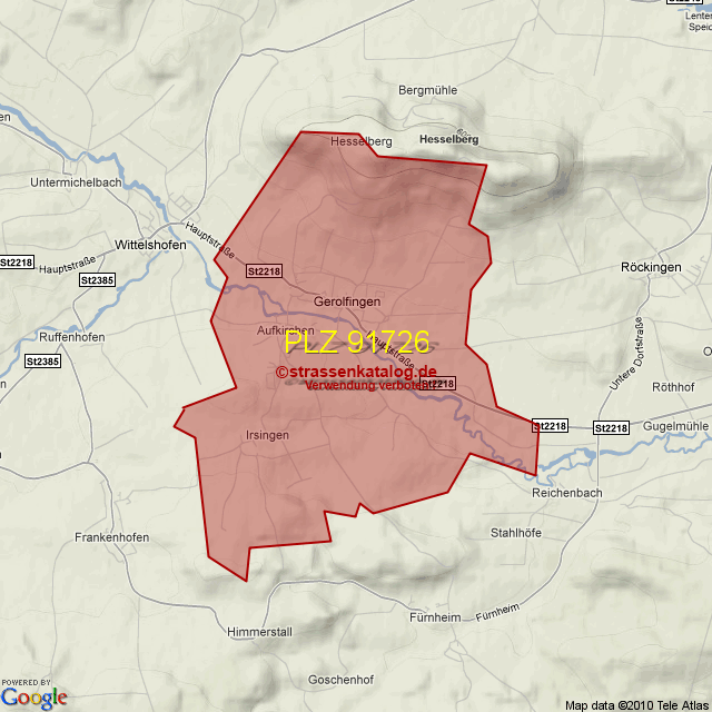 Straßenverzeichnis zur Postleitzahl 91726