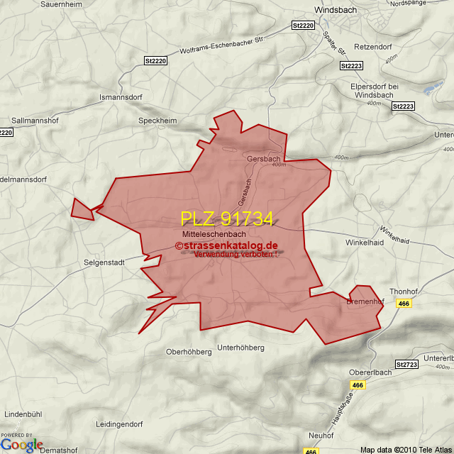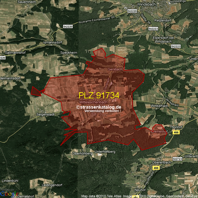 Ortsteile von Mitteleschenbach mit der PLZ 91734