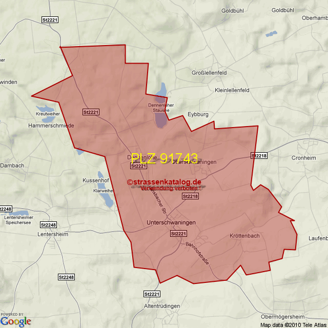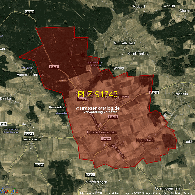 Ortsteile von Unterschwaningen mit der PLZ 91743