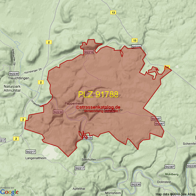 Zu der Postleitzahl 91788 wurden 2 Orte und 10 Ortsteile gefunden.