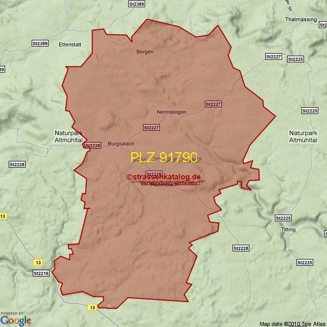 Ortsteile von Raitenbuch mit der PLZ 91790