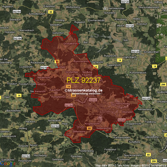 Ortsteile von Sulzbach-Rosenberg mit der PLZ 92237