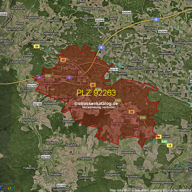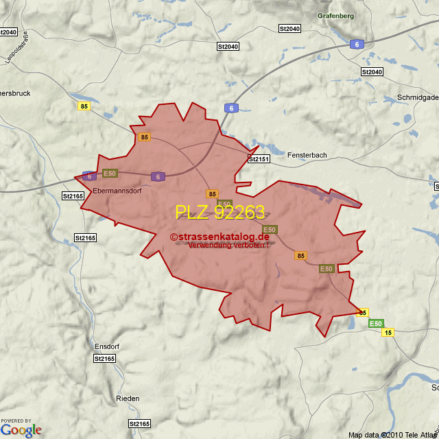 Straßenverzeichnis zur Postleitzahl 92263