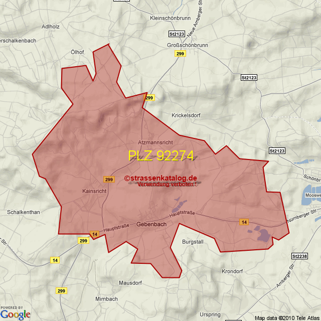 Straßenverzeichnis zur Postleitzahl 92274