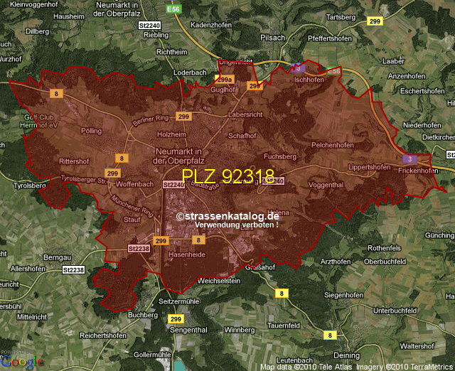 Straßenverzeichnis zur Postleitzahl 92318