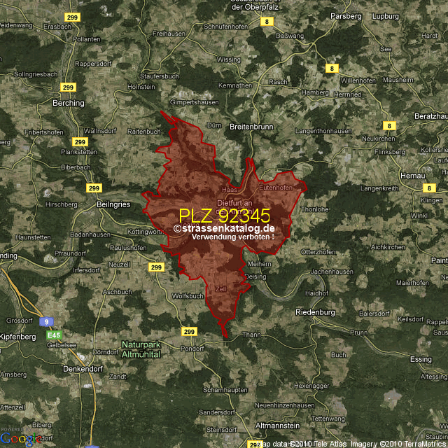 Postleitzahlgebiet (PLZ) 92345