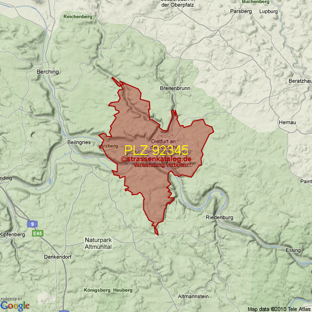 Ortsteile von Dietfurt mit der PLZ 92345