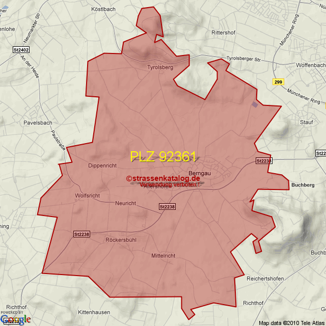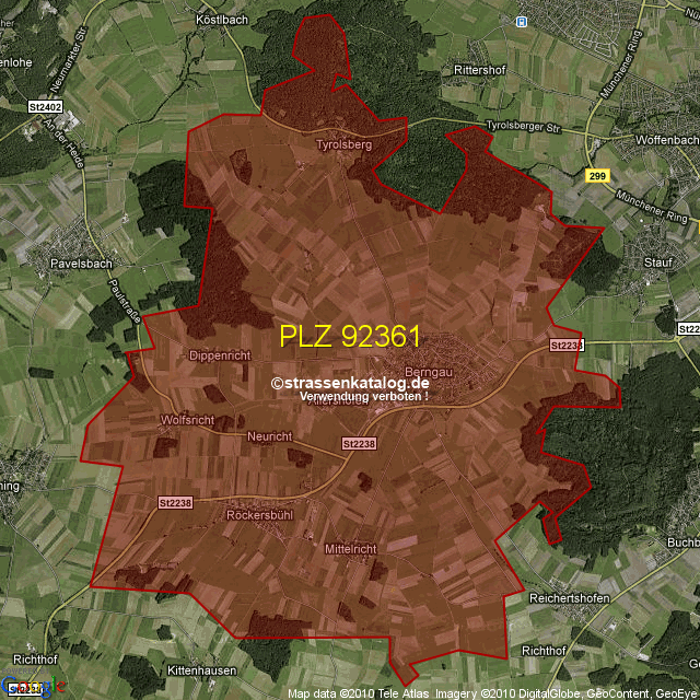 Straßenverzeichnis zur Postleitzahl 92361