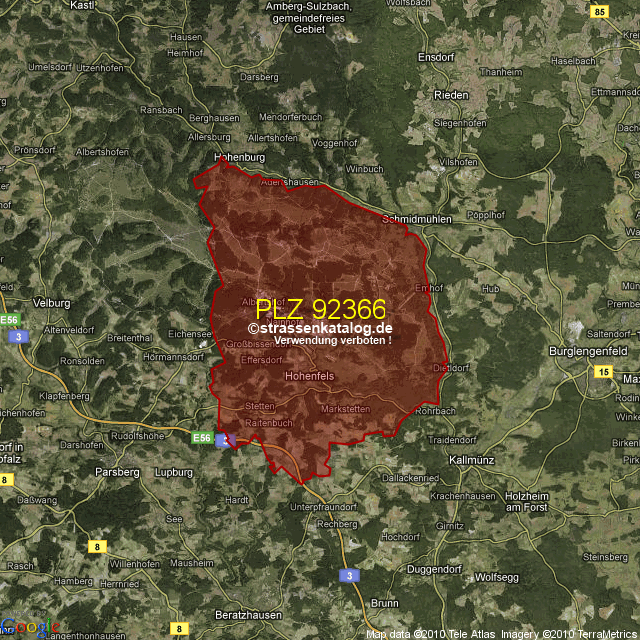 Postleitzahlgebiet (PLZ) 92366
