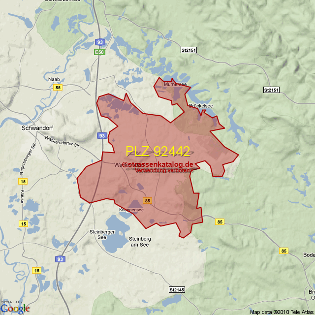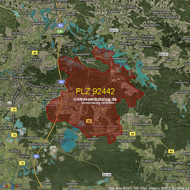 Ortsteile von Wackersdorf mit der PLZ 92442