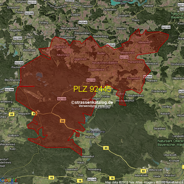 Postleitzahlgebiet (PLZ) 92445