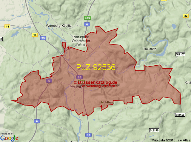 Postleitzahlgebiet (PLZ) 92536