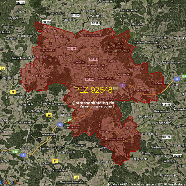 Straßenverzeichnis zur Postleitzahl 92648