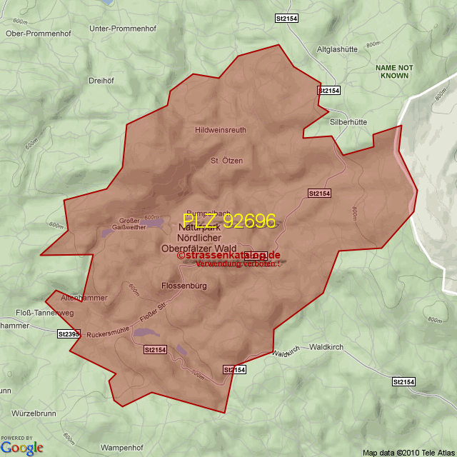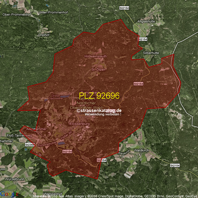 Ortsteile von Flossenbürg mit der PLZ 92696