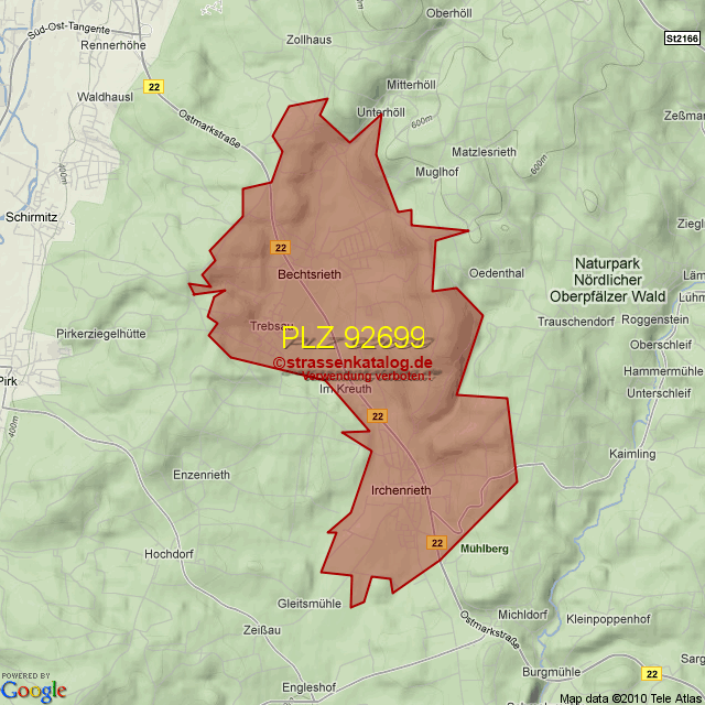 Straßenverzeichnis zur Postleitzahl 92699