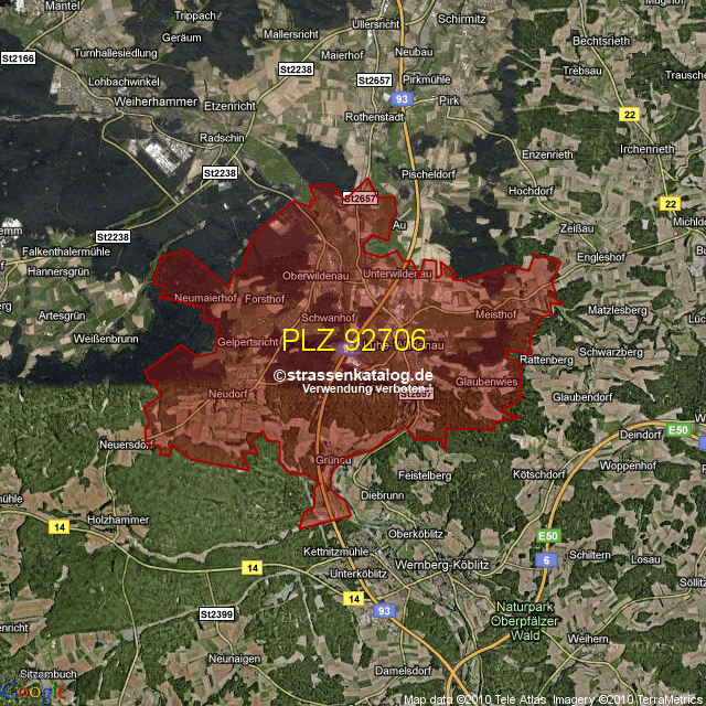 Ortsteile von Luhe-Wildenau mit der PLZ 92706